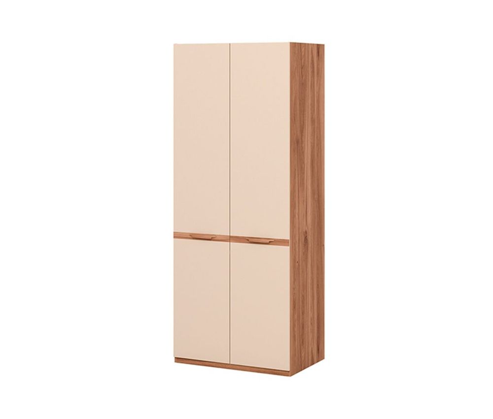 Благодаря визуальному «разделению» фасадов на две составляющие части в пропорциях «золотого сечения» и горизонтальной ручке, шкафы из коллекции AMBER выглядят выше, чем есть на самом деле. Интегрированные ручки из массива покрыты итальянским матовым лаком и удобны как для женской, так и для мужской руки.